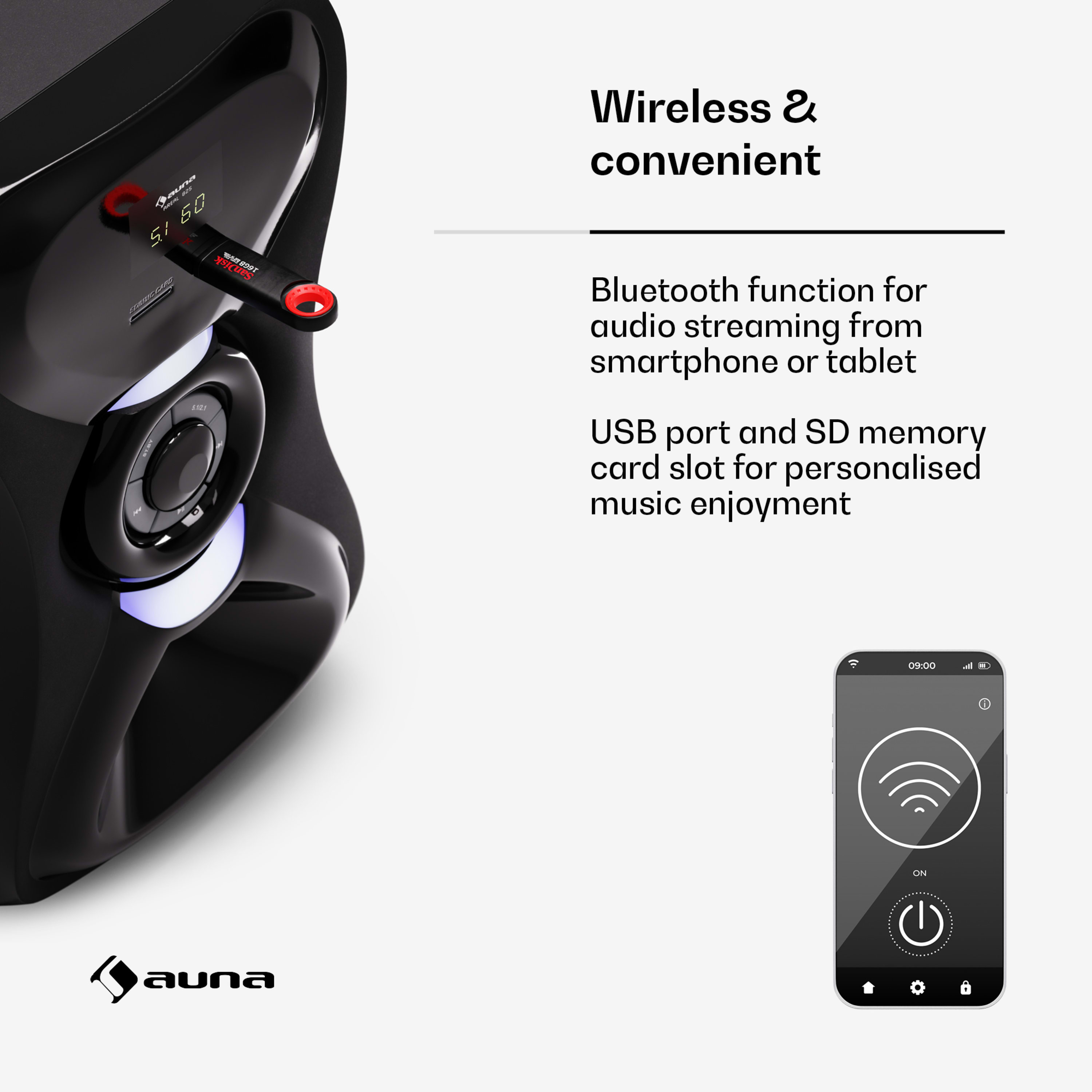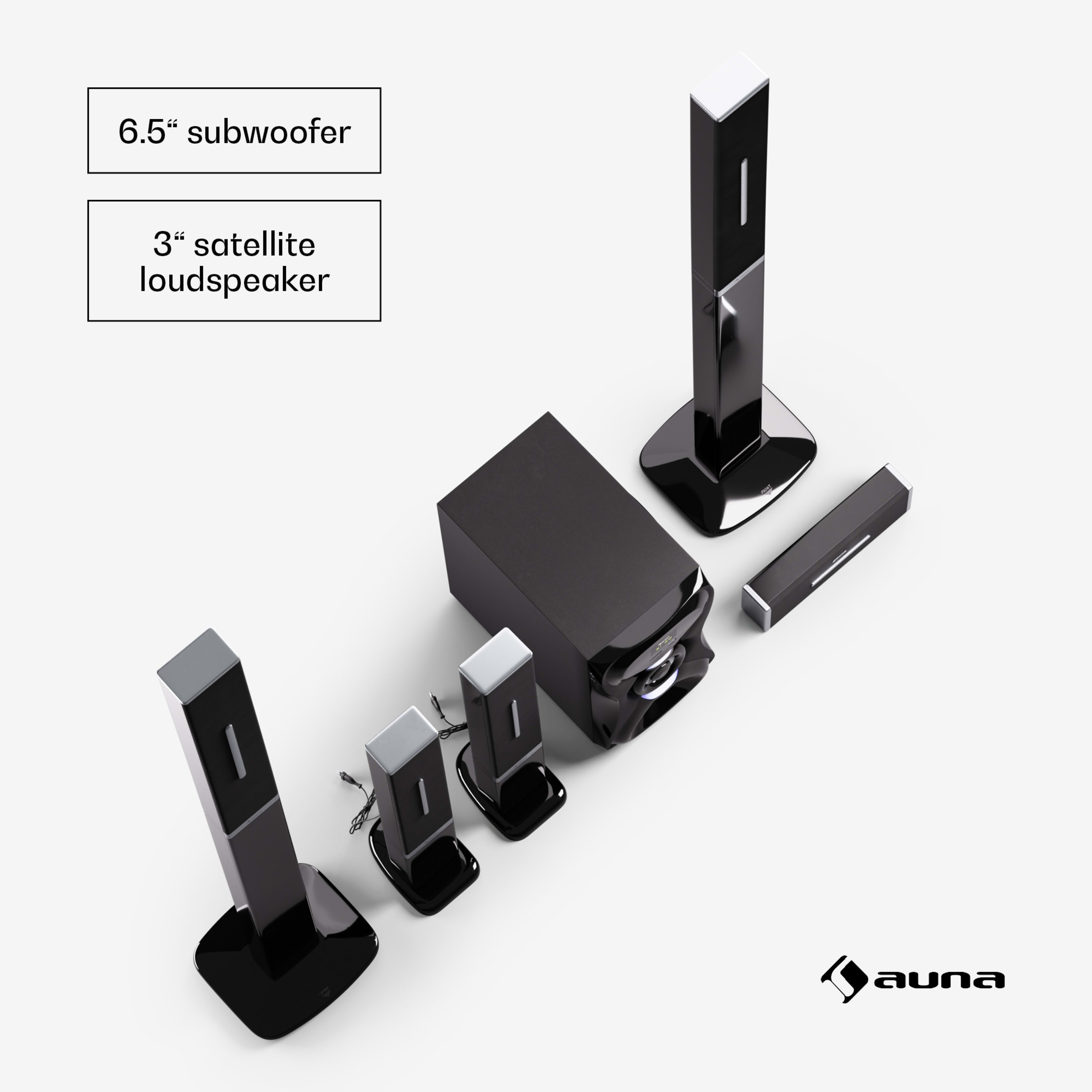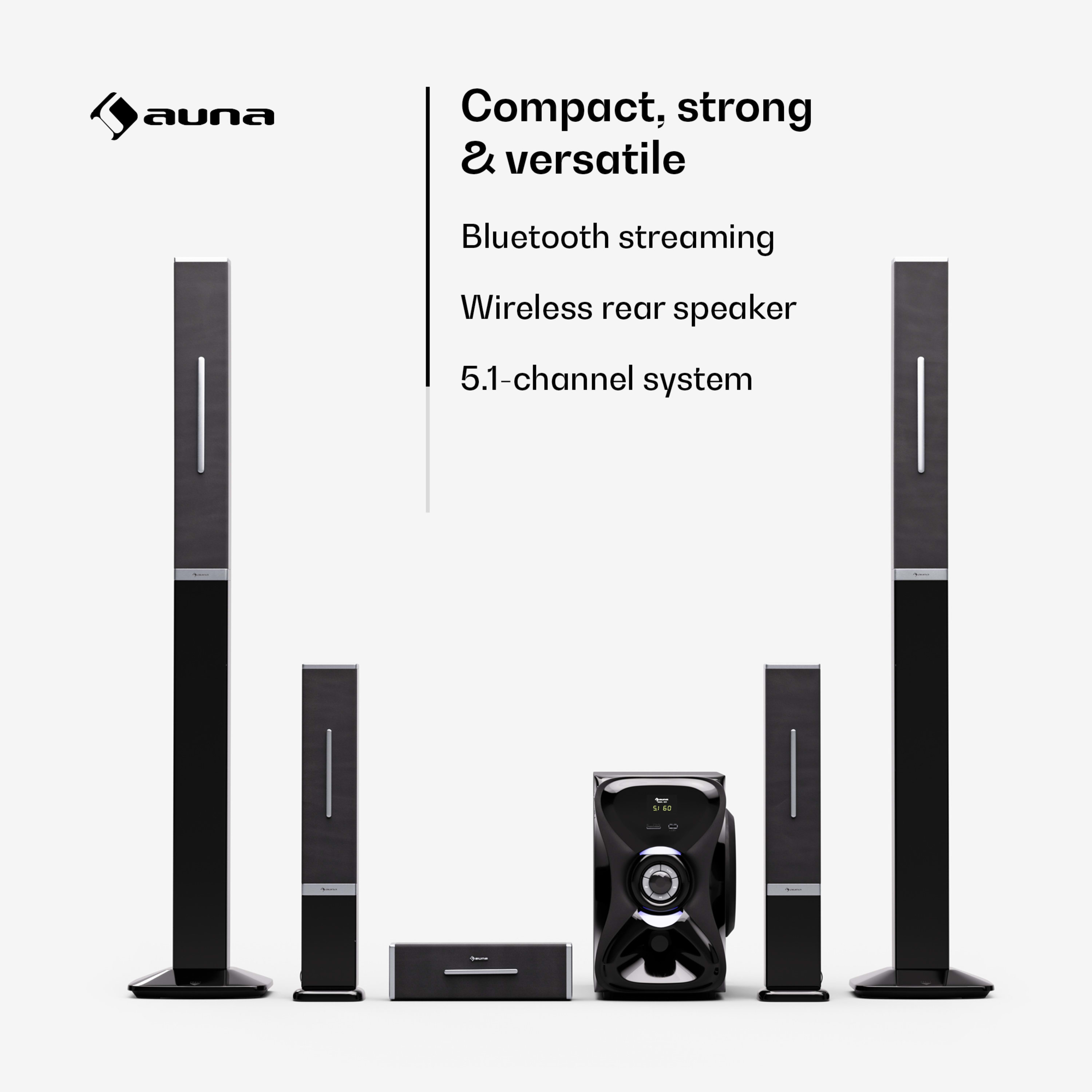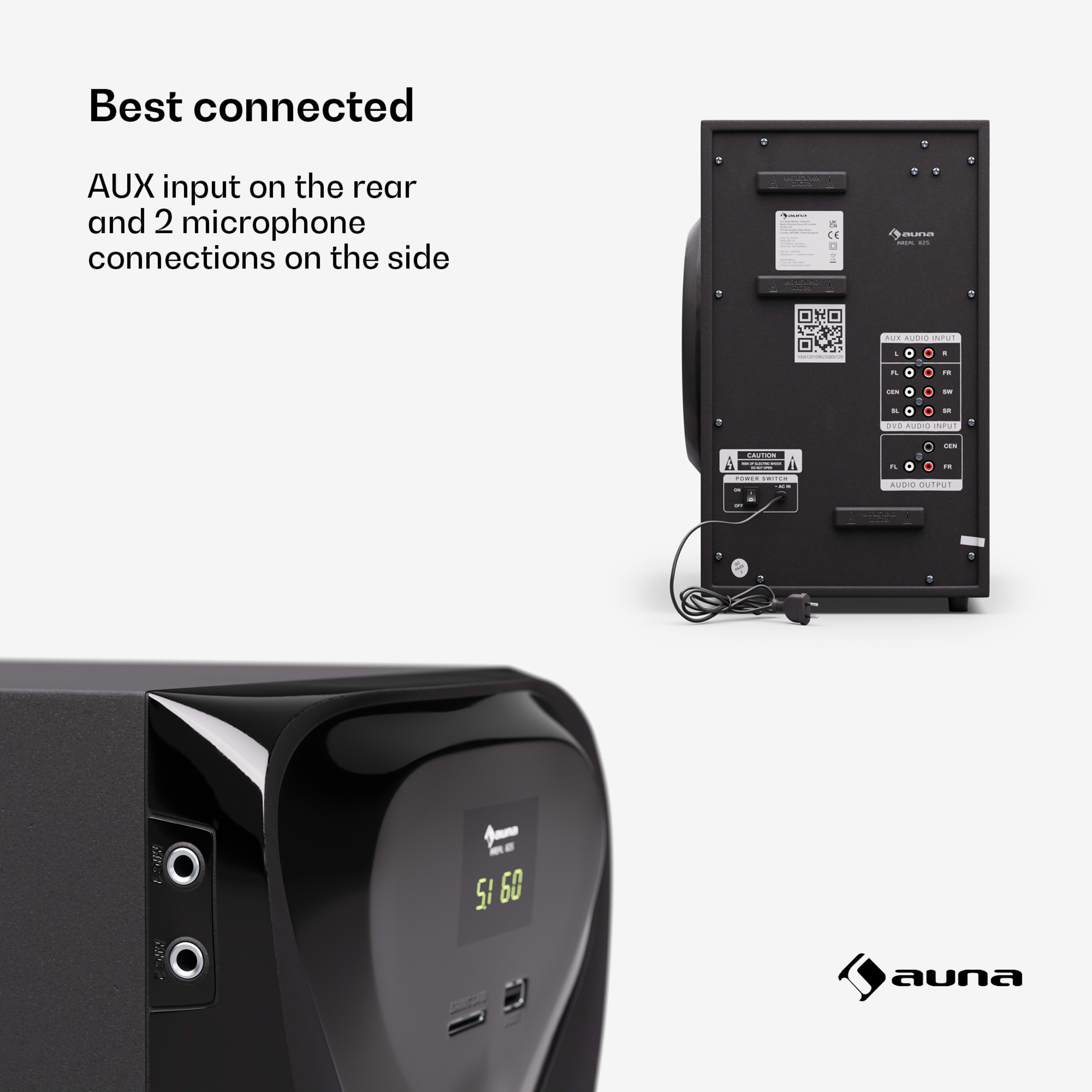 Насладете се на интензивното звуково изживяване от филми, видеоигри и музика със системата от 5.1 високоговорители auna Areal 825 5.1 Wireless благодарение на висококачествения звук!