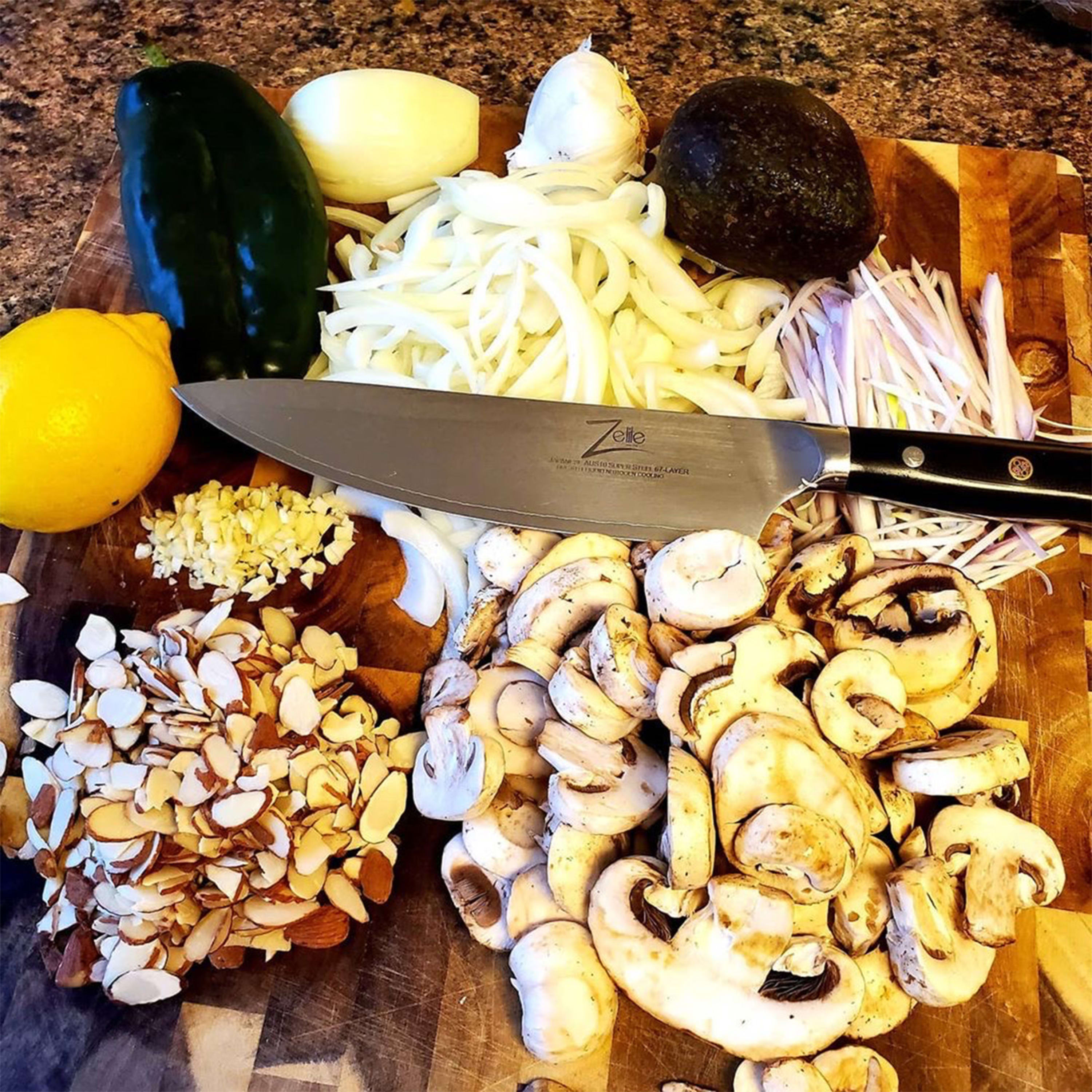 8" нож за шеф готвачи е ексклузивен инструмент от серията Alpha-Royal Japanese от Zelite Infinity by Klarstein. Благодарение на своята универсалност е ценен универсален помощник при всекидневното кулинарно изкуство. Неговите ексклузивни качества произлизат най-вече от заоблените ръбове на остриети в комбинация с гладката, конично стеснена дръжка и изключително остро острие. Благодарение на това е възможен любимия захват на ножа с бързи, люлеещи движения. Със широкото острие бързо ще вдигнеш нарязаните продукти и ще ги сложиш в тенджерата без да ти се полепват по ножа. С него ще кълцаш, режеш или нарязващ като шеф готвач и този кухненски нож повече няма да се отдели от ръцете ти.