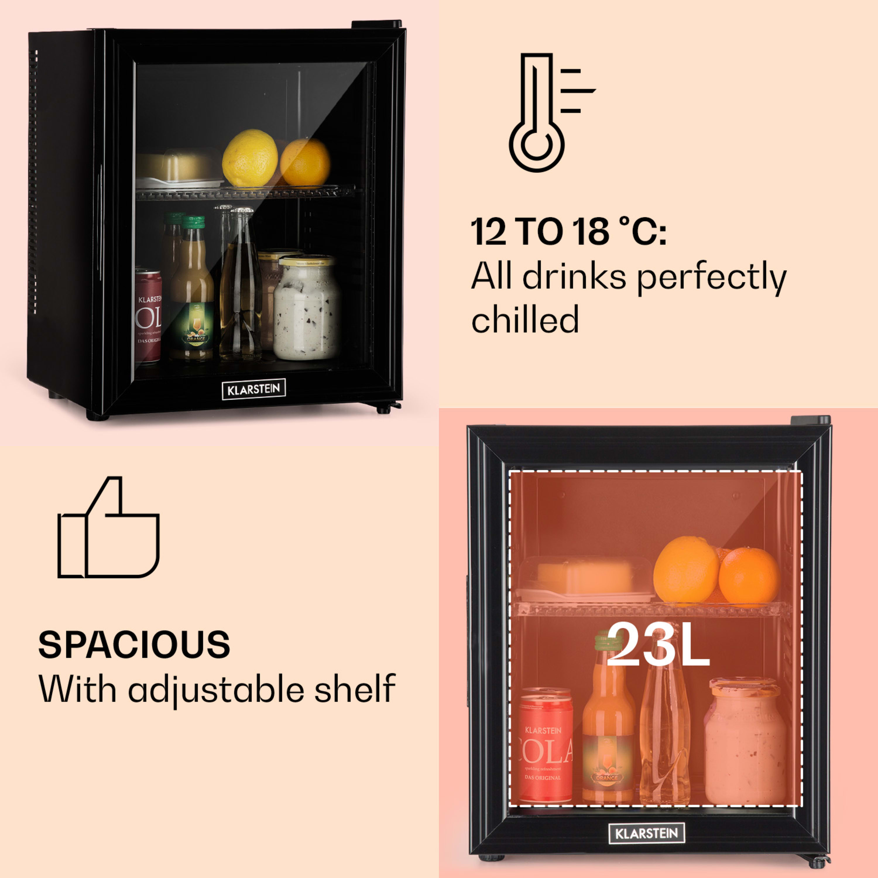 Компактен с голям капацитет за съхранение: мини хладилникът Klarstein Brooklyn 24 предлага достатъчно място с 24 литра използваем обем Гъвкаво вътрешно разпределение благодарение на пластмасовите рафтове, които могат да се разполагат на десет нива с разстояние 2 см. Има 3 степени от 12 до 15 °C за регулиране на охлаждането според нуждите.