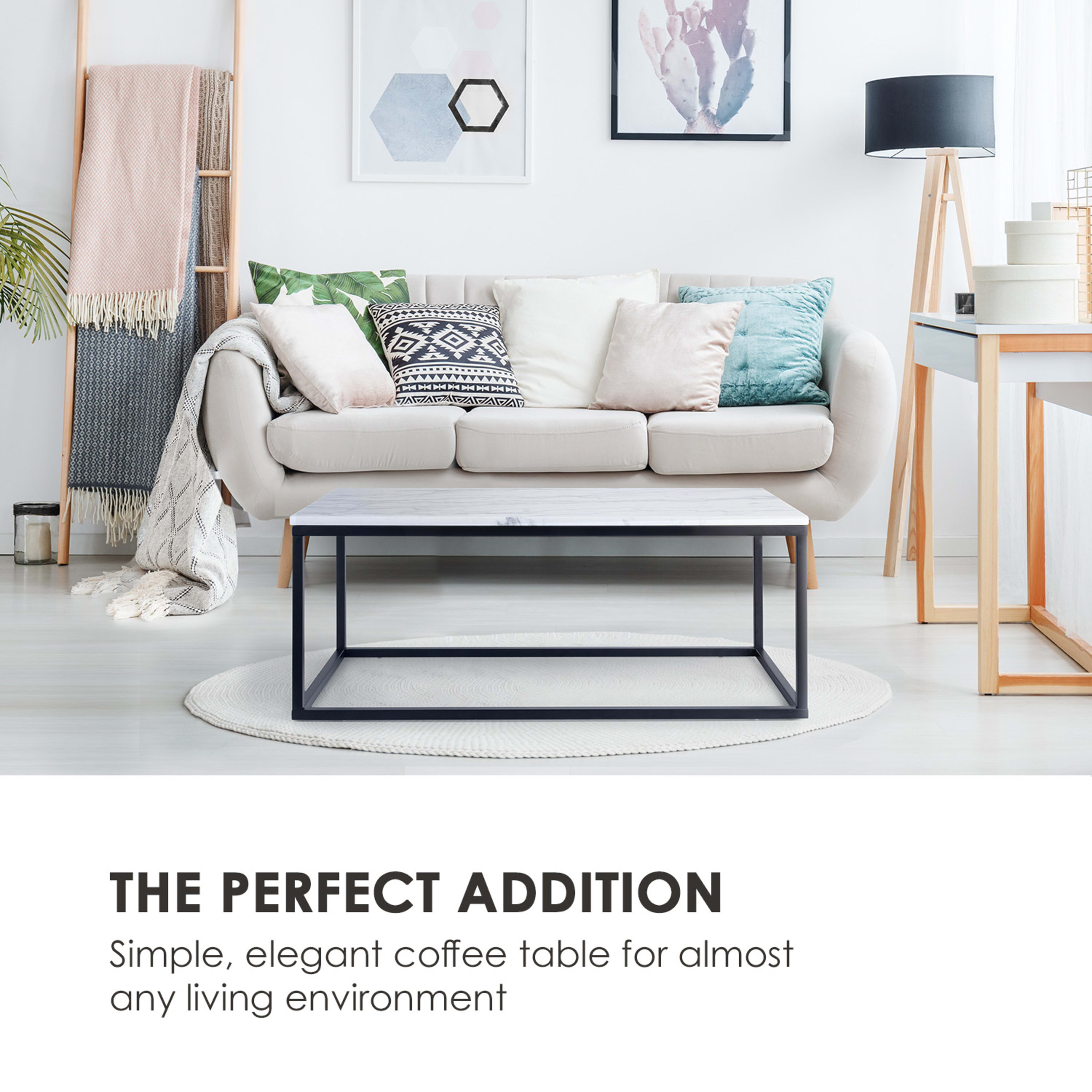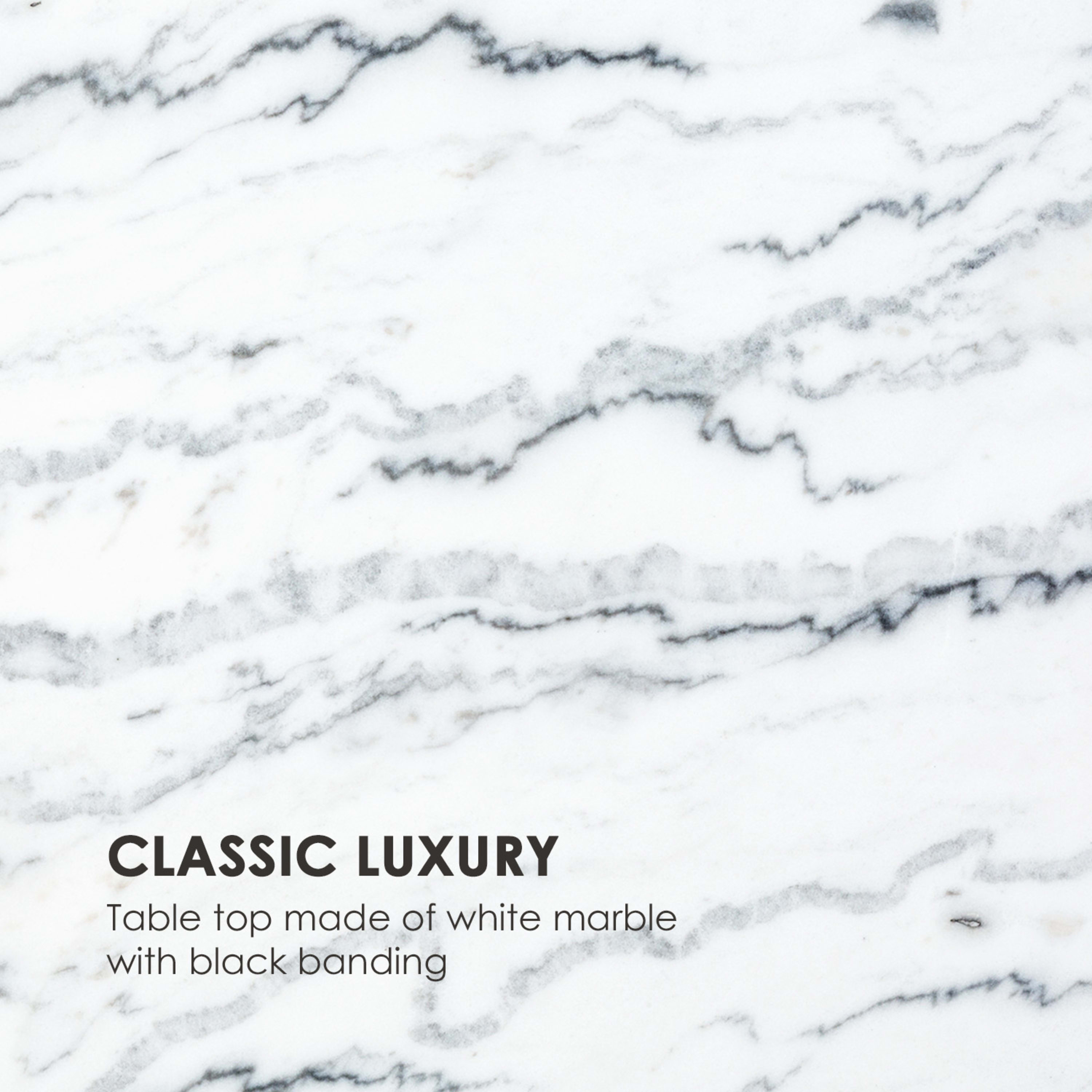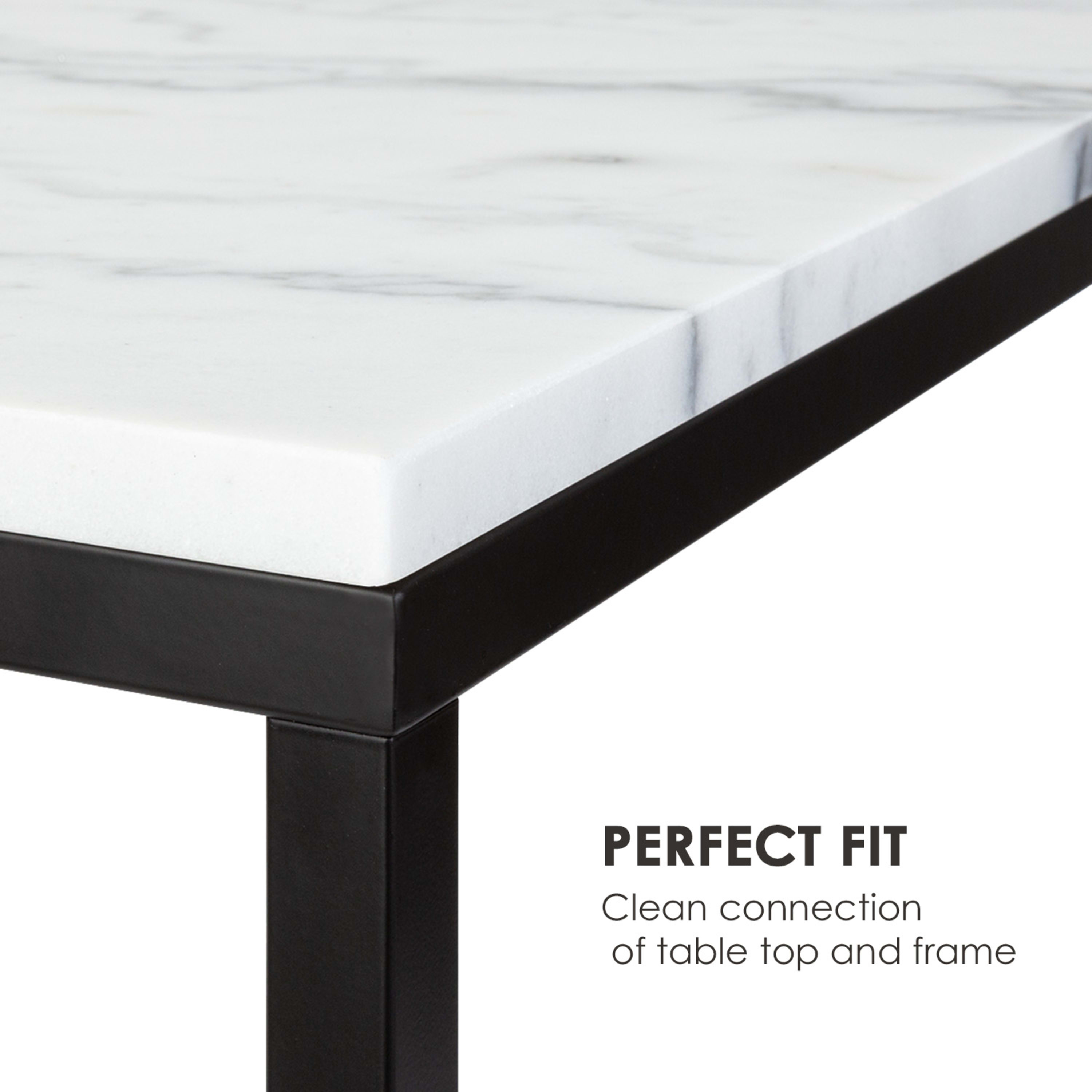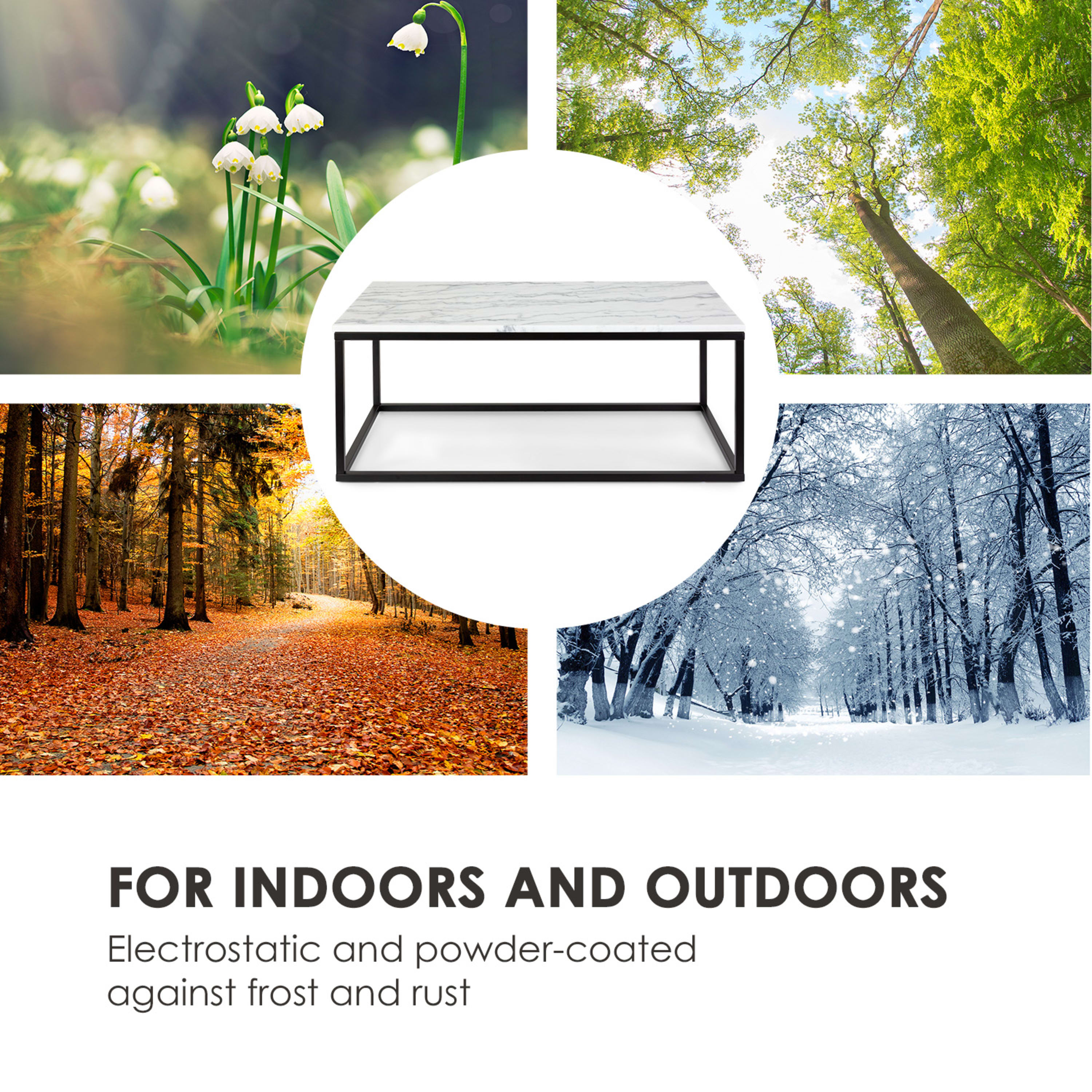 Странична маса Besoa Volos T100 с неповторима елегантност за интериор и екстериор. Нейният гладък, полиран бял мраморен плот за маса с черни вени ще ви върне в лукса на времето на краля на Слънцето. В допълнение, елегантният плот за маса е подчертан и стабилно закопчан благодарение на черна метална рамка, изработена от тръби с дебелина 20 х 20 см. Двойната защита е по-добра, поради което рамката на масата Volos има електростатично покритие и прахово покритие. Това дава на рамката висока устойчивост на атмосферни влияния, замръзване и вода - така Volos T100 може да се използва без проблеми на балкон, тераса или градина. В същото време масичката за кафе остава модерна и проста по отношение на формата, така че се вписва идеално във вашата всекидневна. Благодарение на практическите си размери от 100 х 40 х 50 см, масата Volos T100 е идеална като конферентна маса или като удобна маса за кафе.