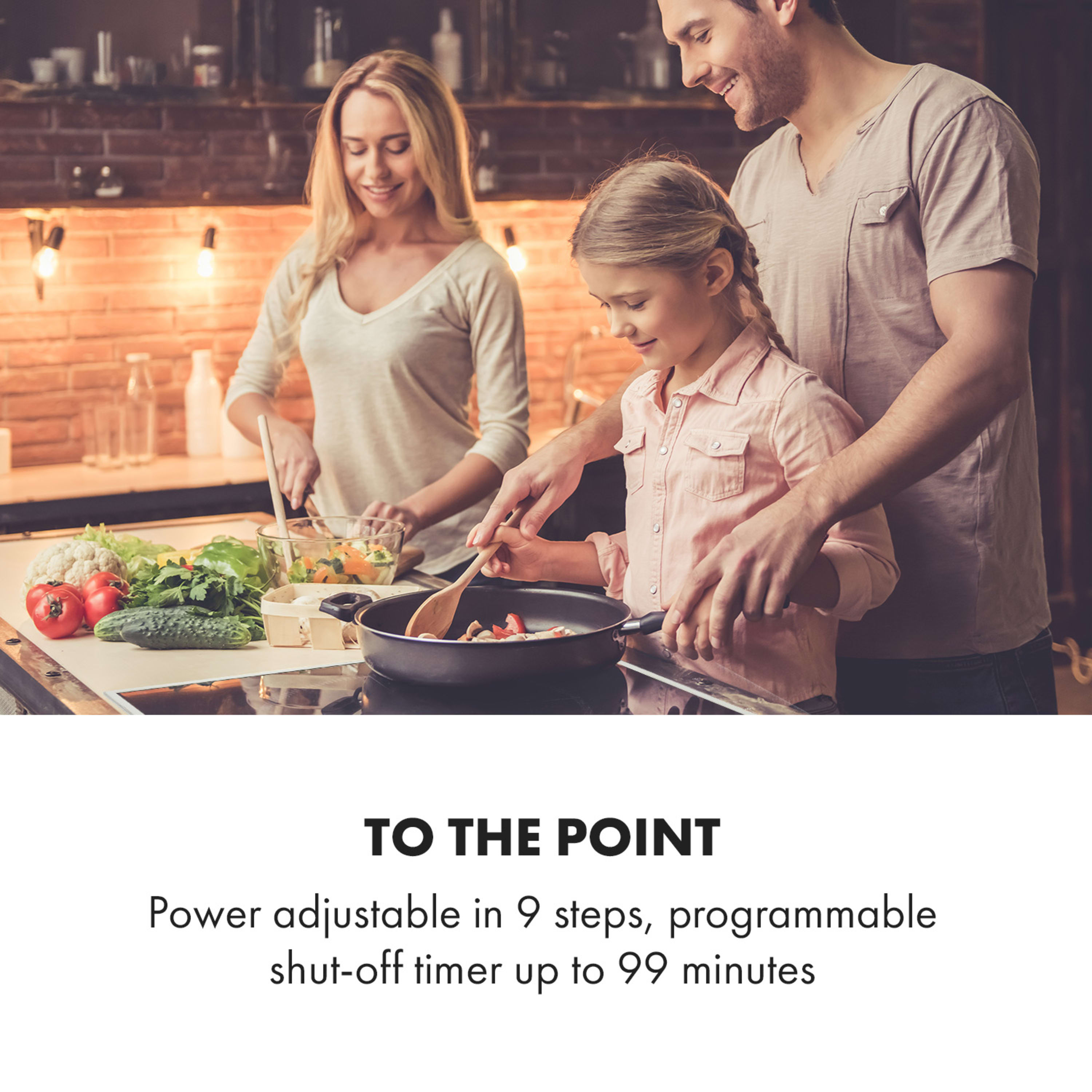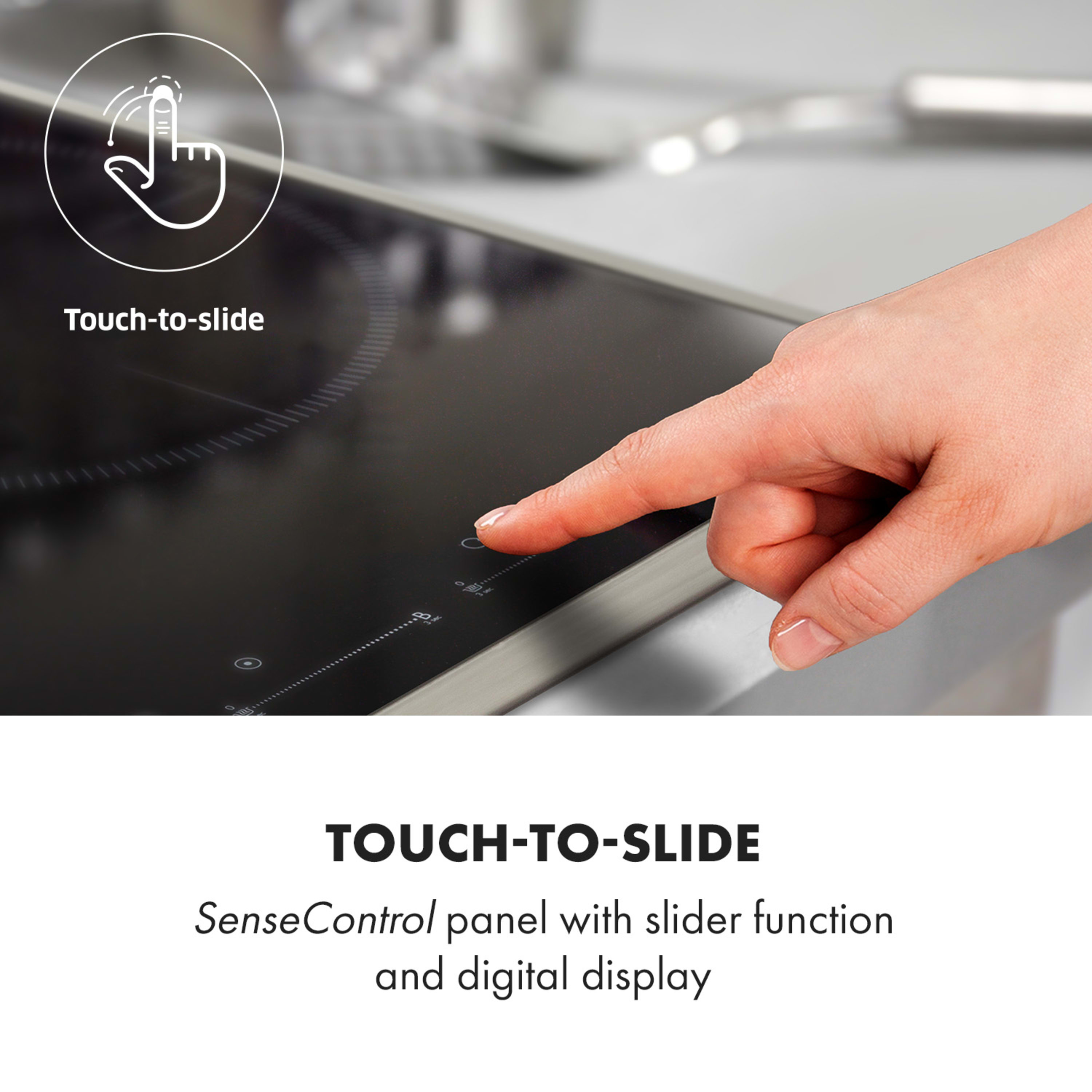 Вграденият плот Klarstein Delicatessa 77 Hybrid Prime предлага четири котлона с обща мощност до 7000 W, които са разделени на 1 x 2500 W и 1 x 2000 W, 2 x 1500 W на отделни котлони - благодарение на което съдържанието на тенджери и тигани се затяга в пикови моменти. В същото време двете ляви зони за готвене се комбинират в една гъвкава зона с функцията VarioHeating: благодарение на функцията за разпознаване на размера на тенджерата, тя се адаптира с максимална гъвкавост към размера на поставени тенджери, тигани или други съдове, като по този начин загрява големи кухненски съдове, които не се побират на една плоча. От една страна, Delicatessa 77 Hybrid Prime наистина използва само енергията, която е подходяща за дадена тенджера, а от друга страна, ви позволява да използвате почти всякакъв размер пот или тиган. Delicatessa 77 Hybrid Prime мисли и за любителите на големите ястия с тиган, като паеля. Правилната зона за готвене е с диаметър 28 см и лесно осигурява достатъчно място за големи тигани. Всички котлони могат да се управляват индивидуално и да имат функцията ThermoBoost, която увеличава мощността за бързо загряване до 2800 W. Стъклокерамичният плот за готвене Klarstein Delicatessa 77 Hybrid Prime се управлява лесно с интегрирания сензорен панел SenseControl с докосване и плъзгане, чрез плъзгане на пръст на работния плот и с помощта на цифровия дисплей. Така че дори бутоните и регулаторите не нарушават повърхността на кухненския модул. В допълнение към мощността, таймер до 99 минути може да бъде програмиран за всяка плоча. Таймерът или изключва котлона след изтичане на зададеното време, или издава звуков сигнал.