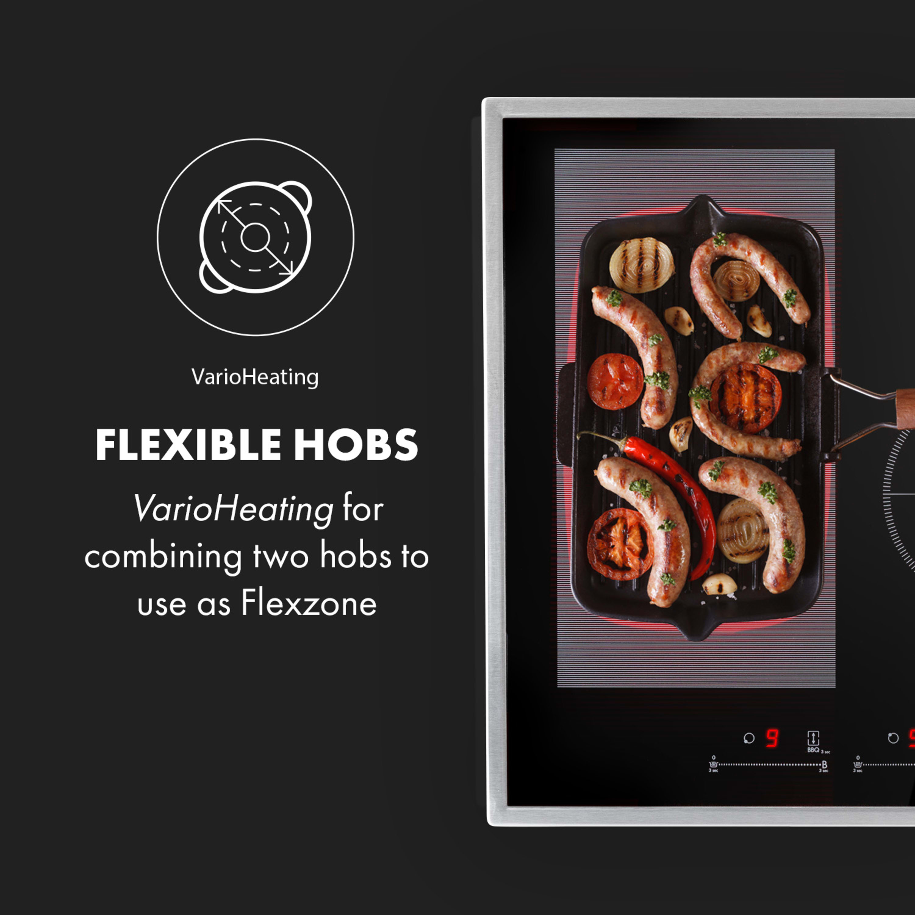 Гъвкави зони за готвене: VarioHeating за комбиниране на лявата повърхност за готвене в една гъвкава зона