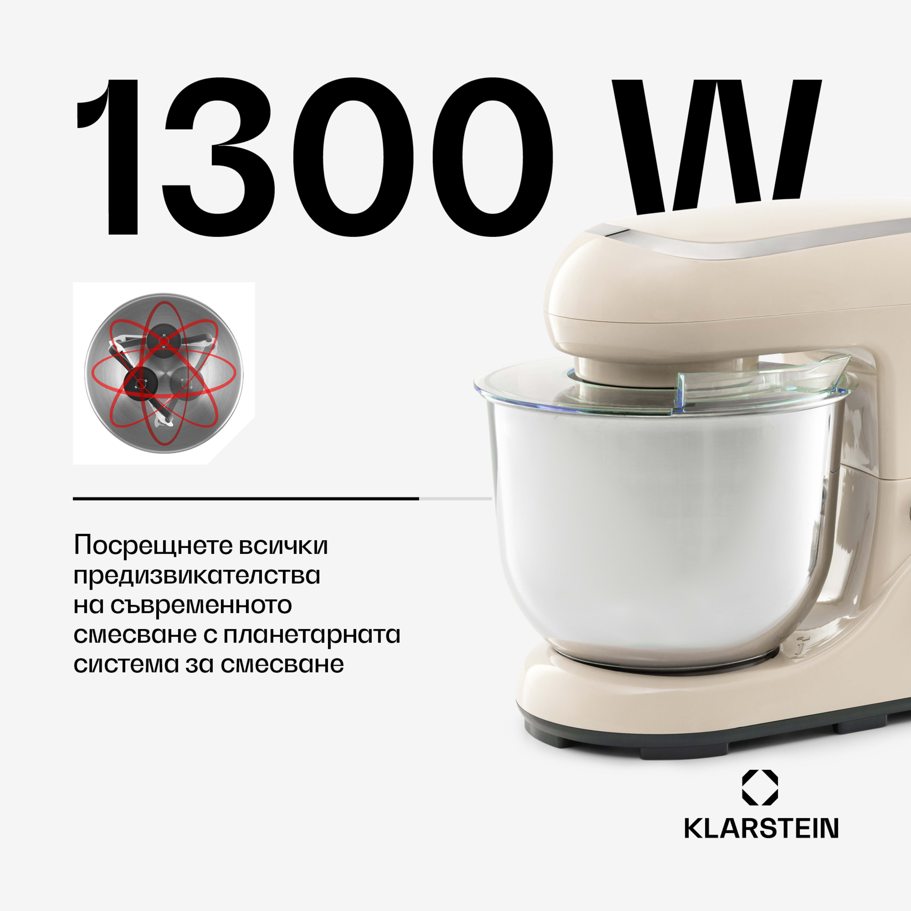 - Пълно оборудване: машина за смесване, купа за смесване, предпазител от пръски, кука за месене, кука за разбъркване и бъркалка
