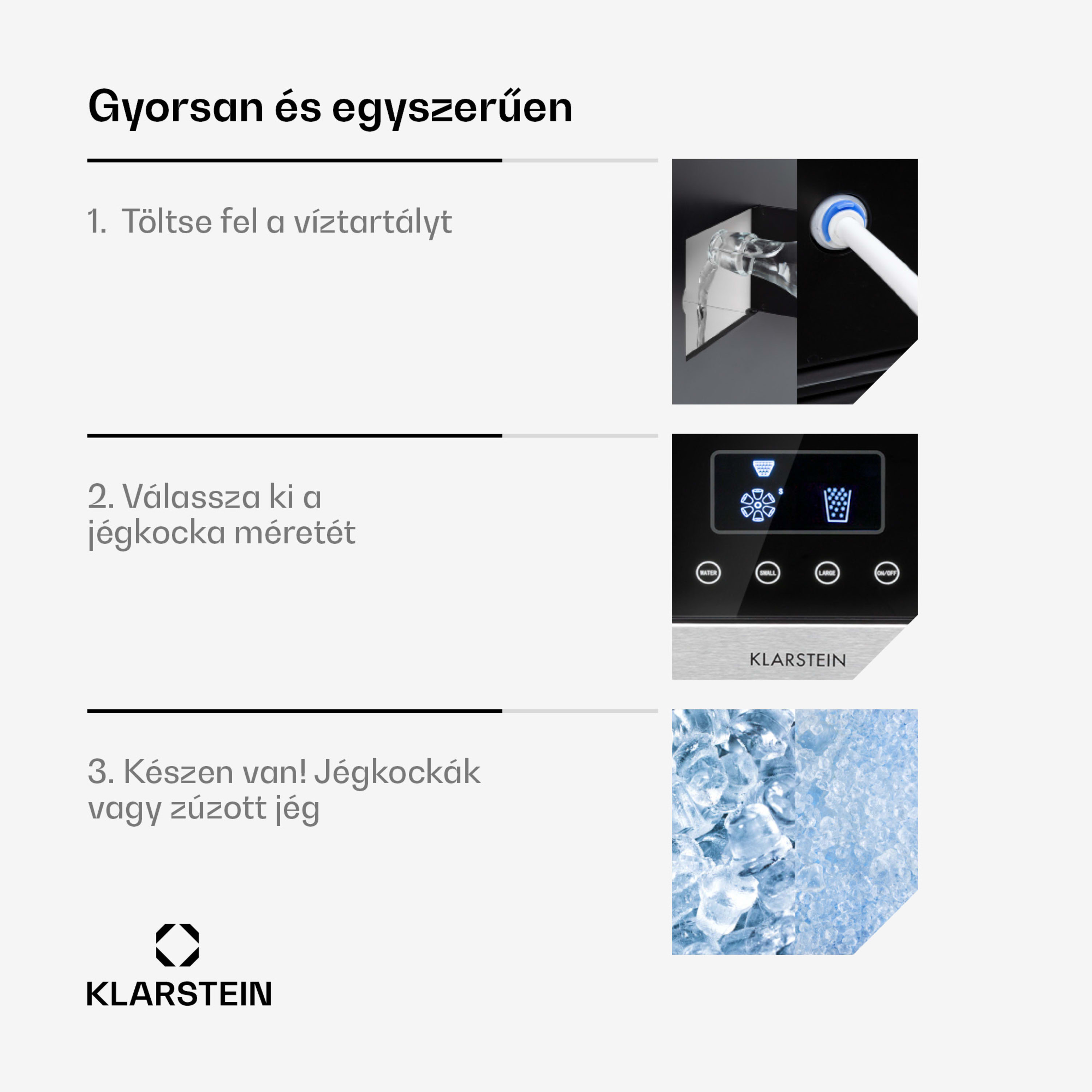 Мощният ледогенератор Eiszeit Crush произвежда 15-18 кг ледени кубчета на ден. Затова е подходящ както за домашна употреба, така и за партита или градински празненства. Ледогенераторът е лесен и удобен за управление с помощта на контролния панел с бутони под ясния LCD дисплей и може да произвежда малки и големи кубчета лед с малки и големи размери. Благодарение на трите си различни функции Eiszeit Crush произвежда не само кубчета лед, но и - както подсказва името - натрошен лед и ледена вода. Големият резервоар за вода с вместимост 1,8 литра и съдът за лед с вместимост 600 г кубчета лед са готови да приготвят всякакво количество ледени напитки. Подаването на вода протича ръчно или чрез свързване към крана с помощта на доставения маркуч. Ако контейнерът за лед е пълен или нивото на водата е твърде ниско, уредът за производство на ледени кубчета ще издаде предупредителен звук, за да можете да реагирате бързо. След употреба издръжливата конструкция с предна част от неръждаема стомана може лесно да се почисти, а непреходният дизайн се вписва във всяка среда.
