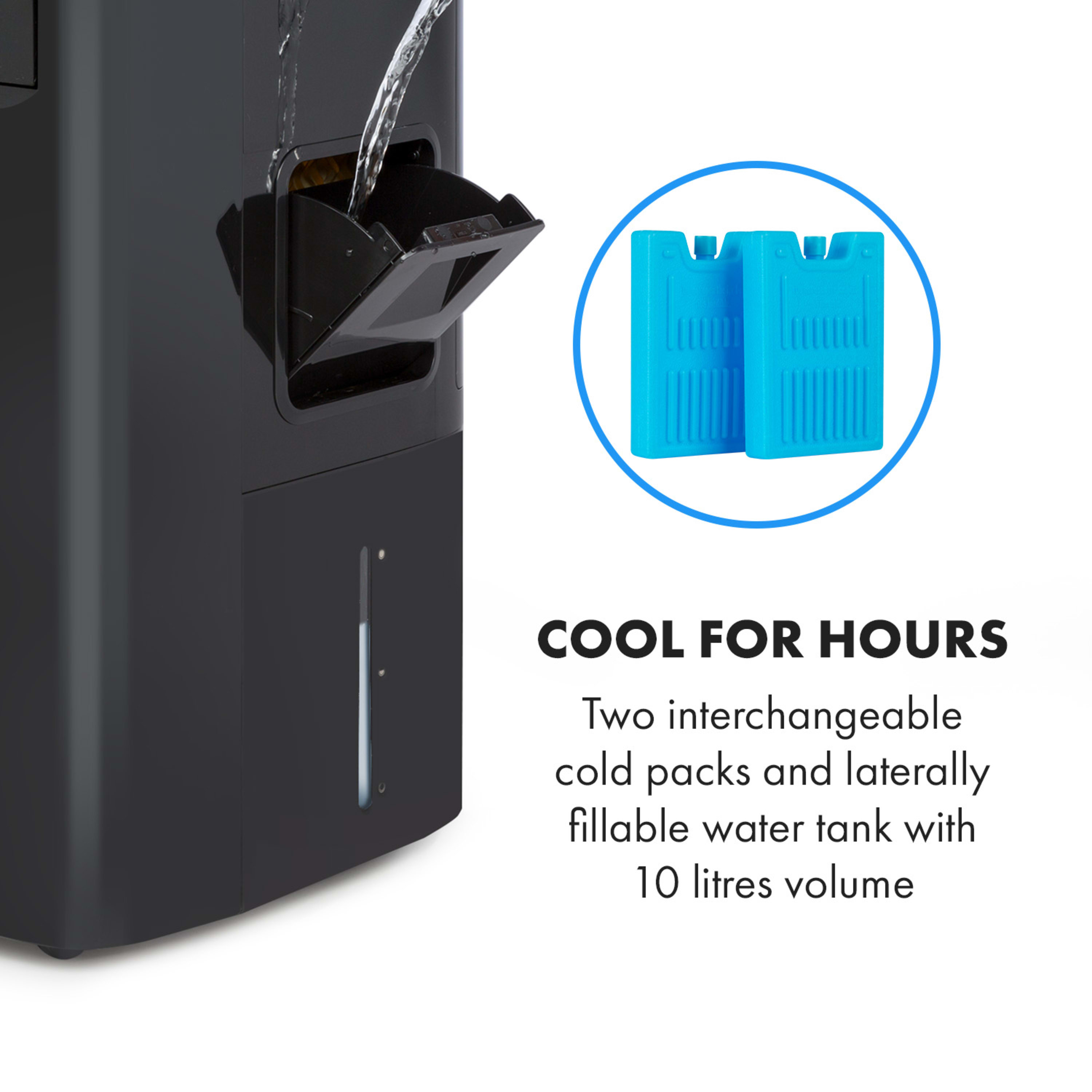 - Охлаждане за часове: две сменяеми охлаждащи акумулатори и 10-литров резервоар за вода