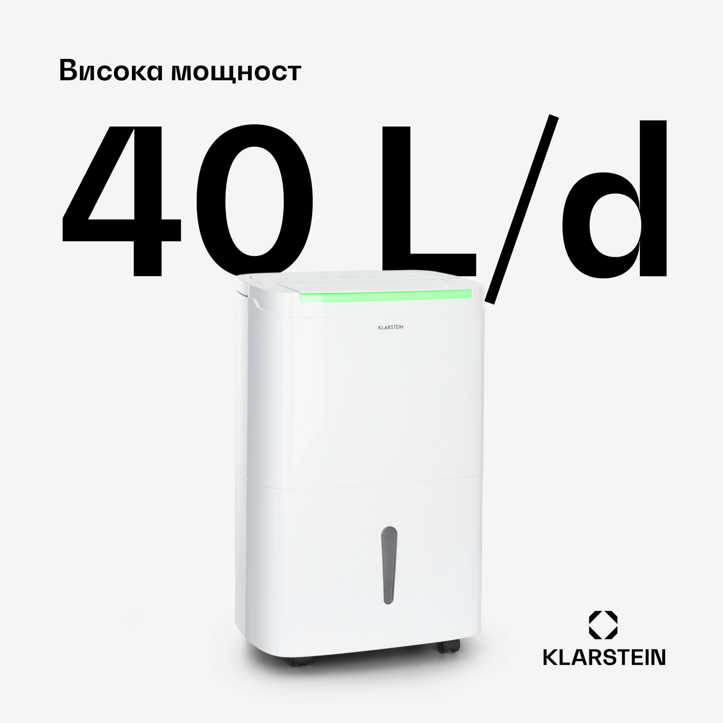 - Идеална влажност: капацитет на изсушаване 40 литра / 24 часа за изсушаване на интериори след строителни и ремонтни дейности или за контрол на влажността в кухнята, банята и спалнята