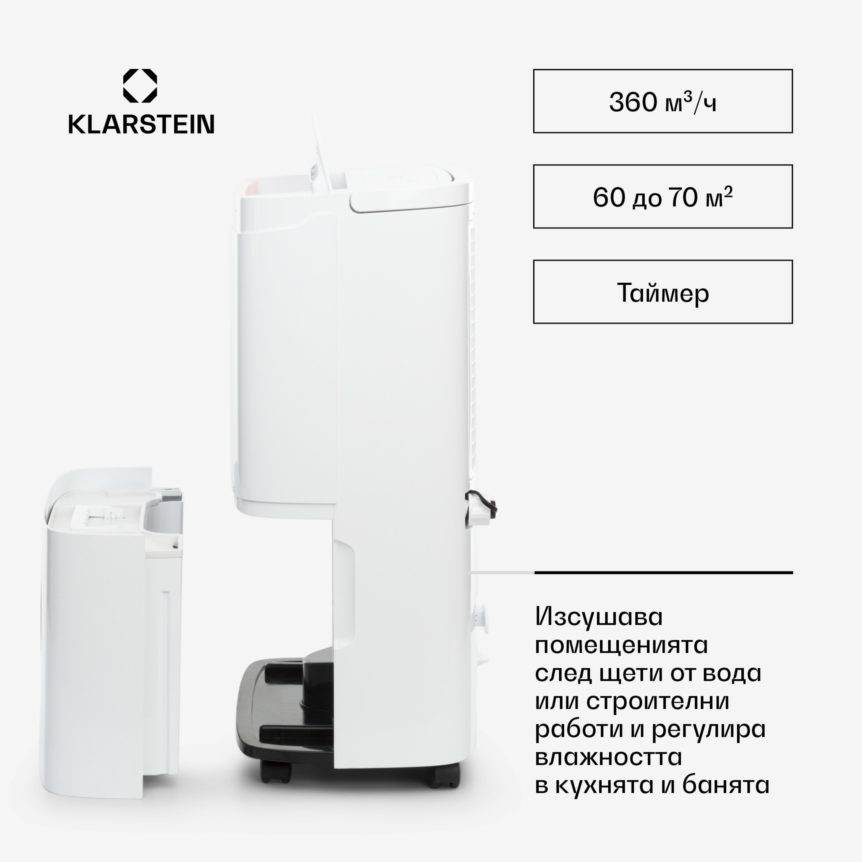 - Много функции: с регулируема целева влажност и таймер от 1 до 24 часа