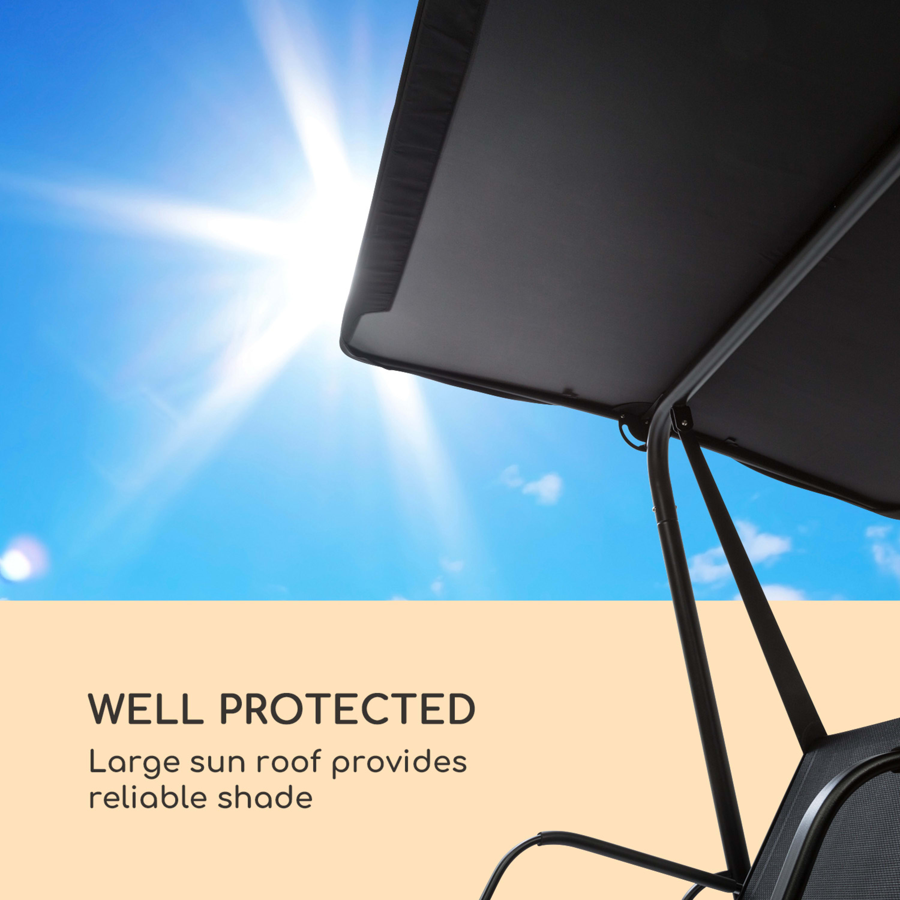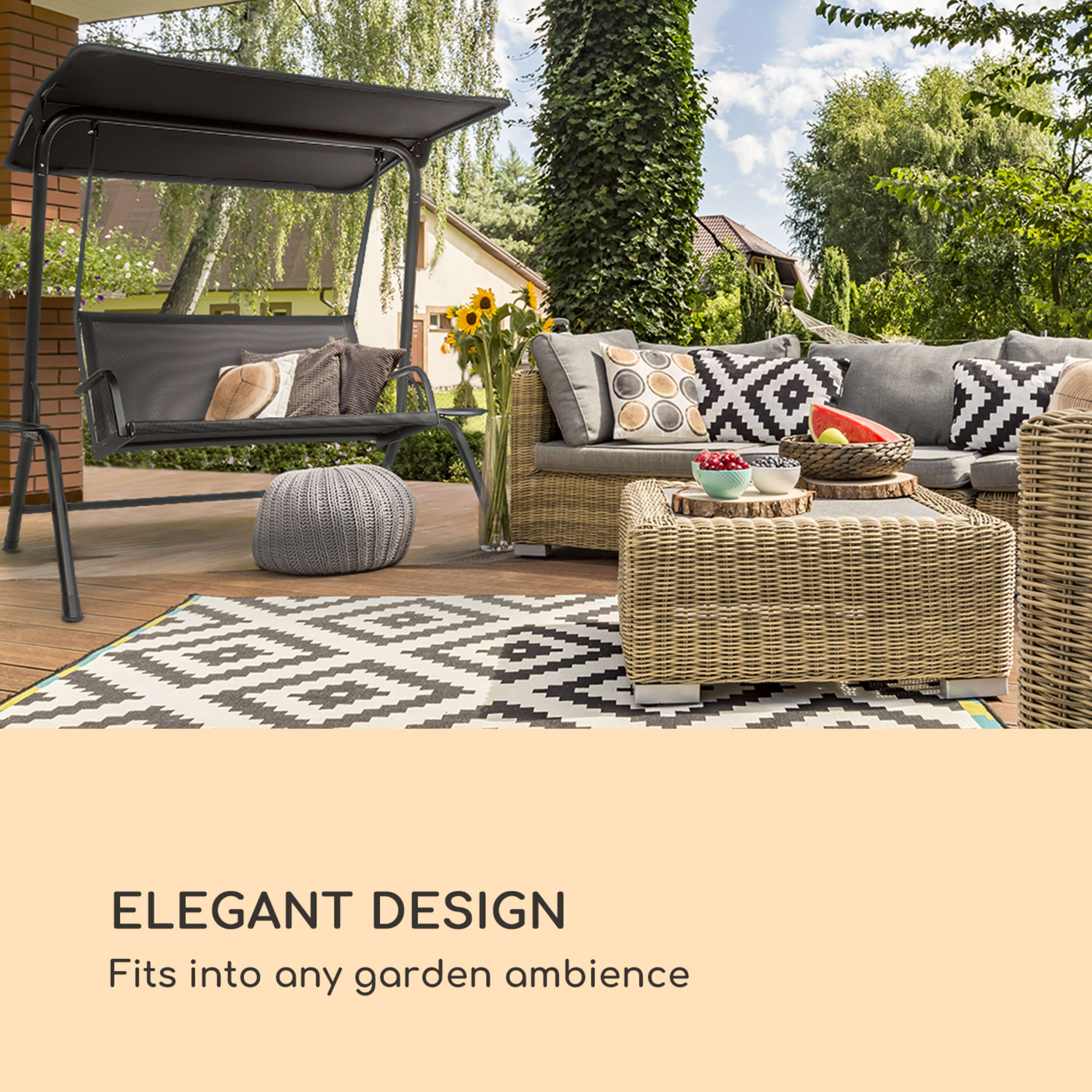 Отпуснете се от ежедневието и се насладете на релаксиращ и релаксиращ час с холивудската люлка Blumfeldt Bel Air Mono Swing.Здравата метална рамка осигурява стабилна позиция на холивудската люлка Blumfeldt Bel Air Mono Swing по всяко време. Седалката, направена от дишащ и лесен за почистване материал, е не само изключително издръжлива, но също така предлага достатъчно място за 2 души с площ от 120 х 50 см (Ш х Г). Mono Relax Дизайнът на холивудската люлка Blumfeldt Bel Air Mono Swing позволява спокойно люлеещо се движение, което го прави остров на релакс сред ежедневието. Големият сенник осигурява надежден нюанс дори при силна слънчева светлина. В допълнение, винтовете от неръждаема стомана гарантират дълъг експлоатационен живот на конструкцията, което въпреки високата си стабилност убеждава с ниското си тегло от 35 кг.Насладете се на красиви моменти на релакс с холивудската люлка Blumfeldt Bel Air Mono Swing.